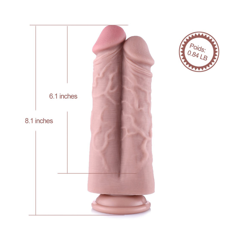 8.5" Two Cocks Silicone Dildo For Hismith Sex Machine With KlicLok Connector